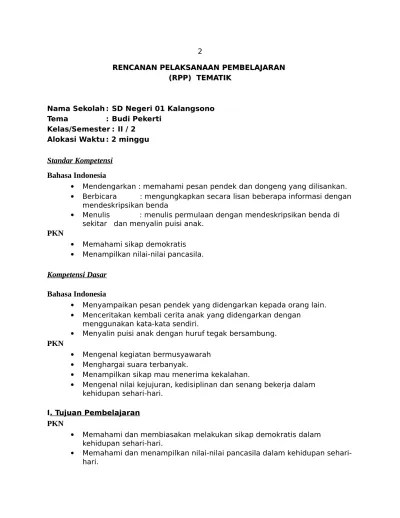 Rpp Tematik Kelas 2 Semester 2 Ktsp 2006 / Rpp Sd Kelas 2 Pdf Document - Cerdas ulangan harian tematik kelas 2 sd mi kelas 2 semester 1 dan 2.